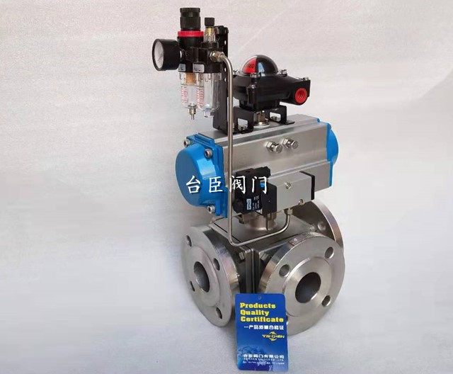 氣動方形三通球閥介紹: 氣動方形三通球閥又叫臺灣體方型三通球閥,顧名思義是引進臺灣先進制造工藝改良升級的產品。該氣動方形三通球閥由L型或T型方體三通球閥及氣