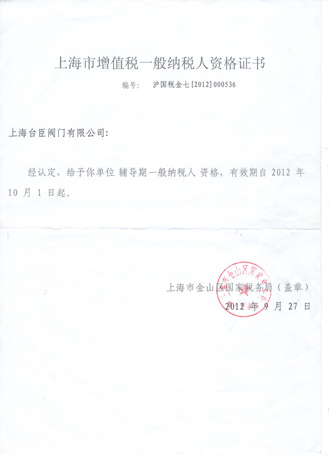 臺臣閥門 > 臺臣簡介 >資質(zhì)證書